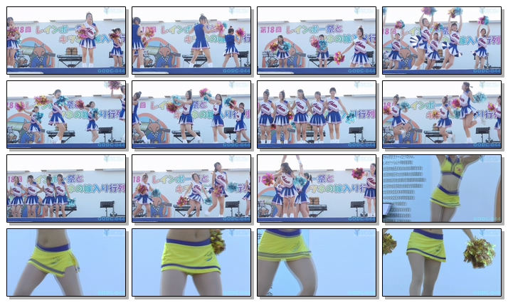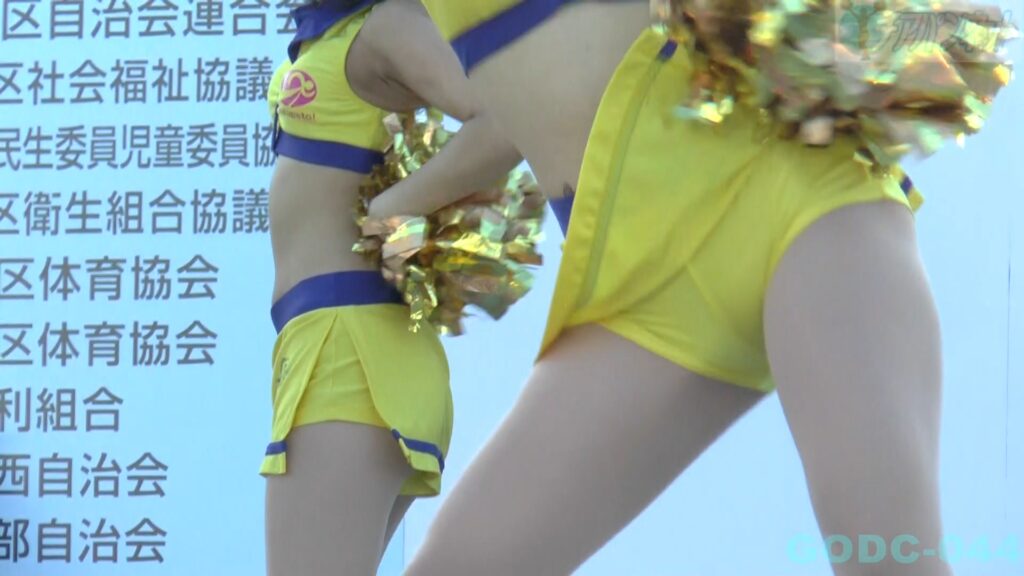 映像はカメラ固定の引き映像で、多くのチア演技を収録。開始いきなりの後ろ向きに大ジャンプしてお尻のアンスコが全開に!