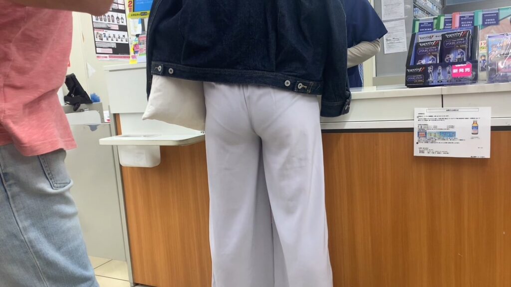 ぴたっと擦りつくパンツに下着がくっきり見えます。