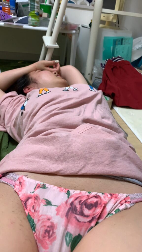 みんな大好き、ど変態いとこのMちゃんは、お風呂上がりぽしゃけを飲んでくつろぎ中。そうこうしているうちに、よいすぎてねちゃいました。
