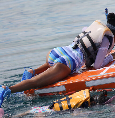 ・マリンレジャーを楽しむ女性にお願いして撮影いたしました。