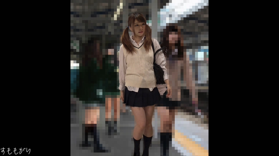 ・向かい合う形で押し込み乗車しまずはゆっくり太ももから指をはわせてスカートの中へと侵入。