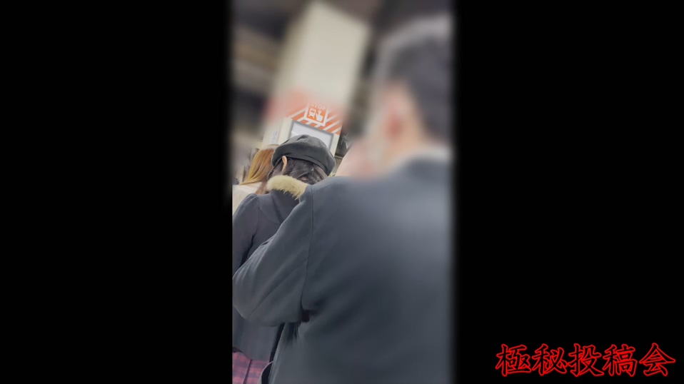 ラッシュ時に満員車両の列に並ぶミニスカの女。
