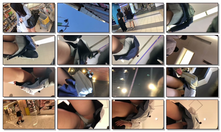 征服JKちゃんの盗撮風動画です。4人分で中身は水色サテン、ピンク、白サテン、水色レースです。内容は駅と路上での逆さ撮りです。