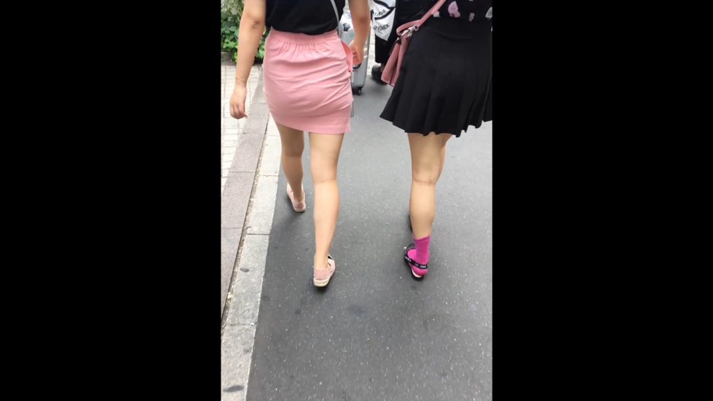 ファストファッションのスカートなのか、極薄生地でV字パンティーラインは丸見え。