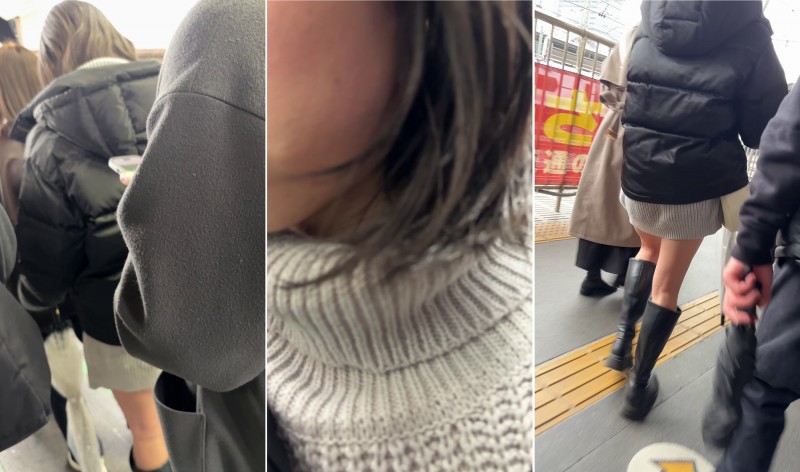 嫌がる人は向きを変えて逃げたり、手やカバンでガードしたりしますが彼女をそのまま・・・やはりOK子か!