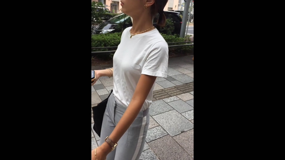 なかなか珍しいパンツ姿のお姉さんの出勤姿。