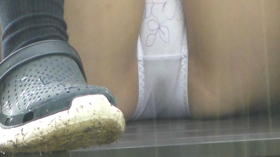 on 望遠JK盗撮 雨で無防備パンチラ JK3人望遠撮影