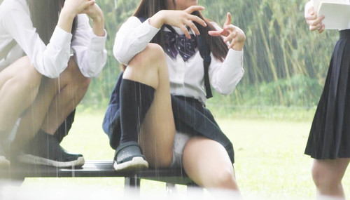 望遠JK盗撮 雨で無防備パンチラ JK3人望遠撮影