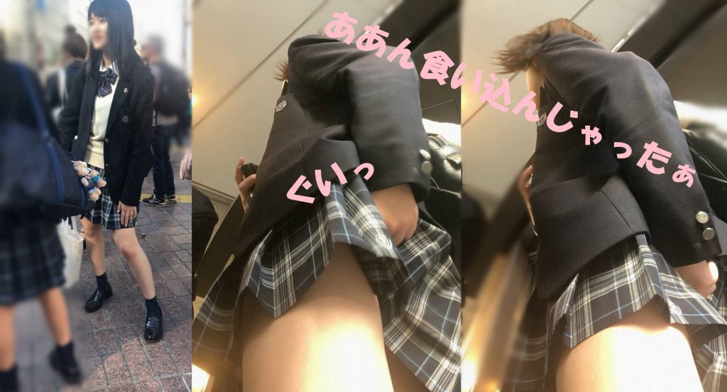 20代にもなれば人目をはばかってなかなかしなくなるものですが、そこはやはり10代!!まさかオカズにされるとは想像もせず会話に盛り上がりながらしれっとスカート越しにパンティーを引っ張っています。