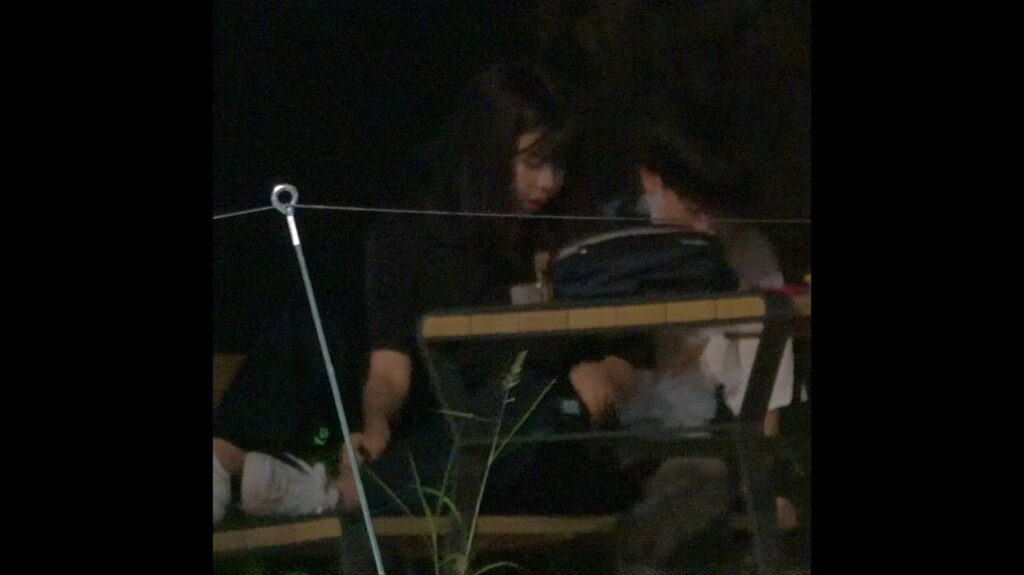 主導権を持つ彼女は両足で壁を作り隠しながら緊張する彼の股間へ。