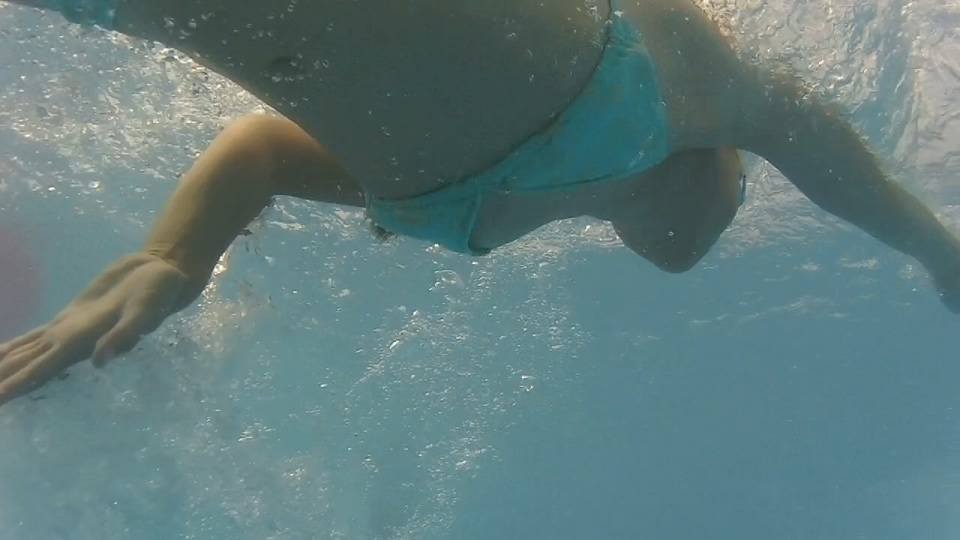 フリル付き白ビキニ着用 水中撮影