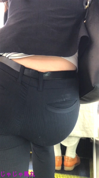 ロングヘアー和風顔のパンツスーツOLです。