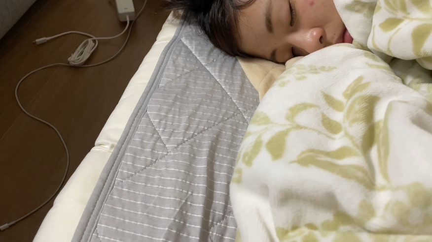 勉強とバイトで疲れていたのか、すぐに寝ちゃったので、その様子を撮影することに。。