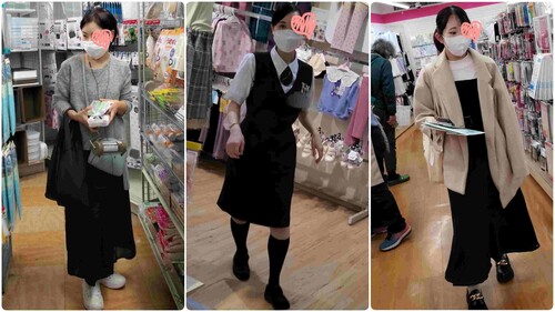 二人目:目元がきりっとしたショートカットの美人さんです。ロングスカートではありますが、前かがみ時に全開でめくらせて頂きまして、其れなりに接写もできたのではないかと思います。