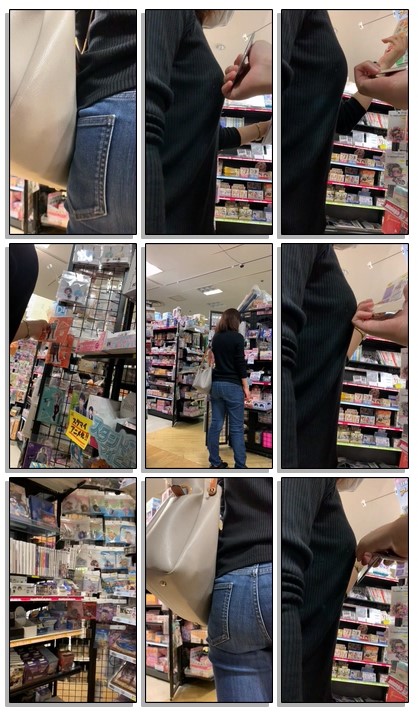真剣に商品を選んでいる女性の隣で、顔やおっぱいをジロジロと眺めますww
