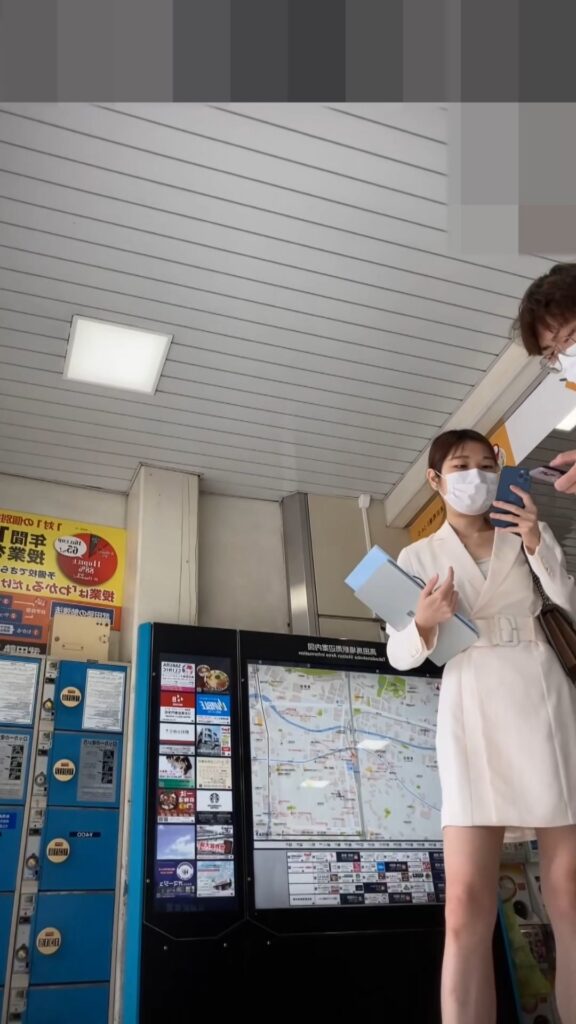 2本目は、勧誘員の様なお姉さんが、熱心に男性にアンケートの様なものを取っています。。