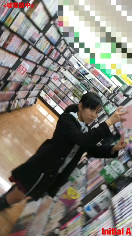 レンタルDVDを選んでいるところを反対側の棚から撮影。