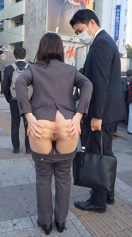 ズボンをおろしてお尻ひろげる