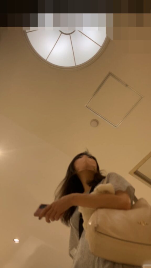 薄い水色のレースっぽいワンピースに、黒のパンストだったので、ダメ元で覗いてみると、、
