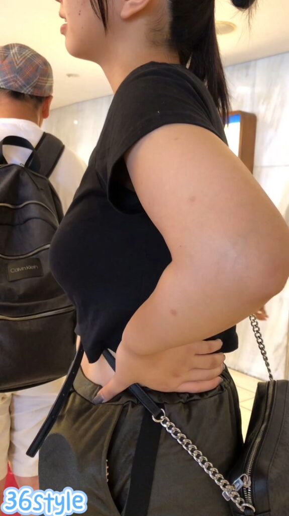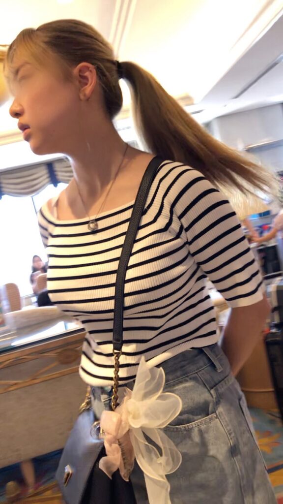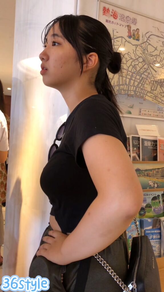 第2候補は黒シャツのへそ出しルックの童顔JD!