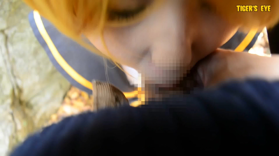 コスプレ野外撮影会でイタズラ 鏡○リン風美少女のおっぱい触りまくり!!&フェラ口内発射してやった!!