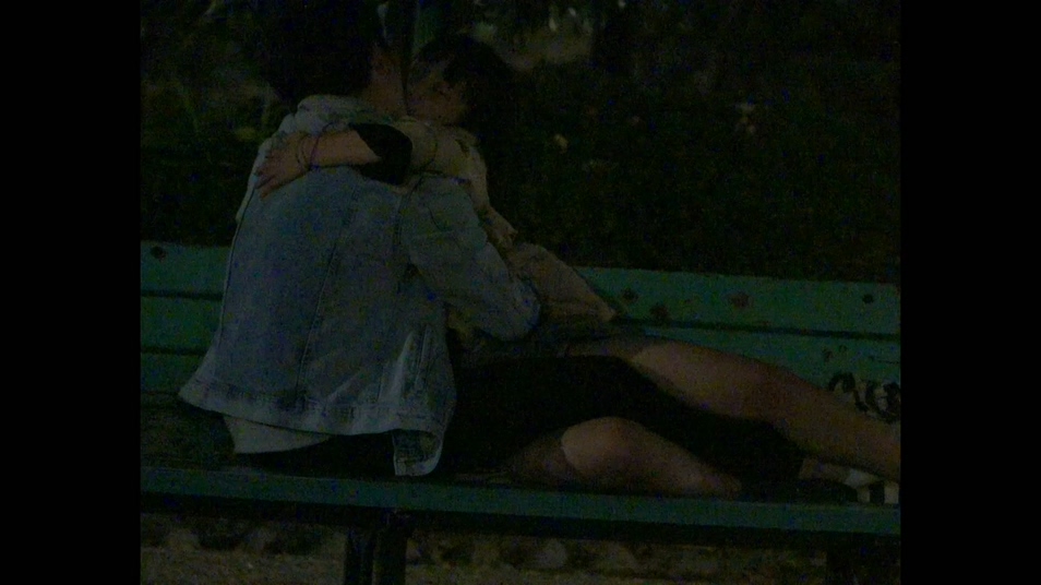 ベンチをベットの代わりにして絡み合いdキス